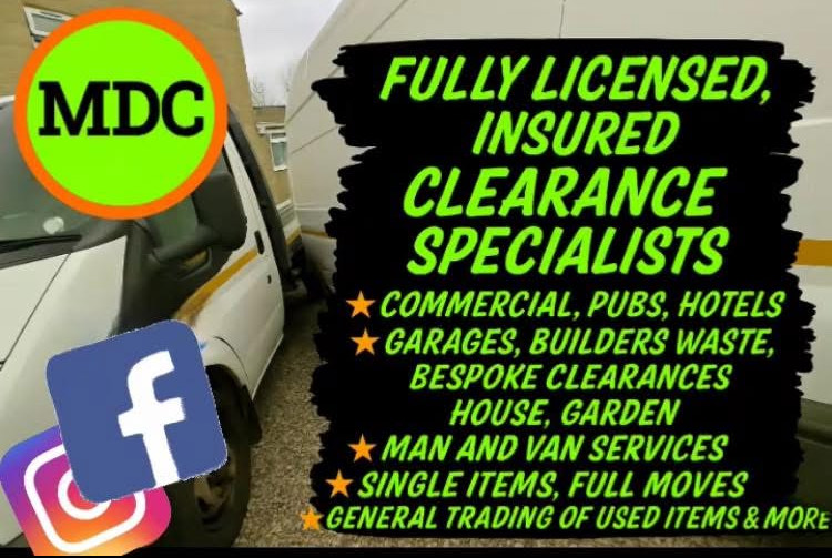 ⭐️ Fully licensed, Insured⭐️ Clearances specialists⭐️ Commercial, Pubs, Hotels⭐️ Garages, builders waste, storage units⭐️ Bespoke clearances, House, Garden⭐️ Man and Van services⭐️...